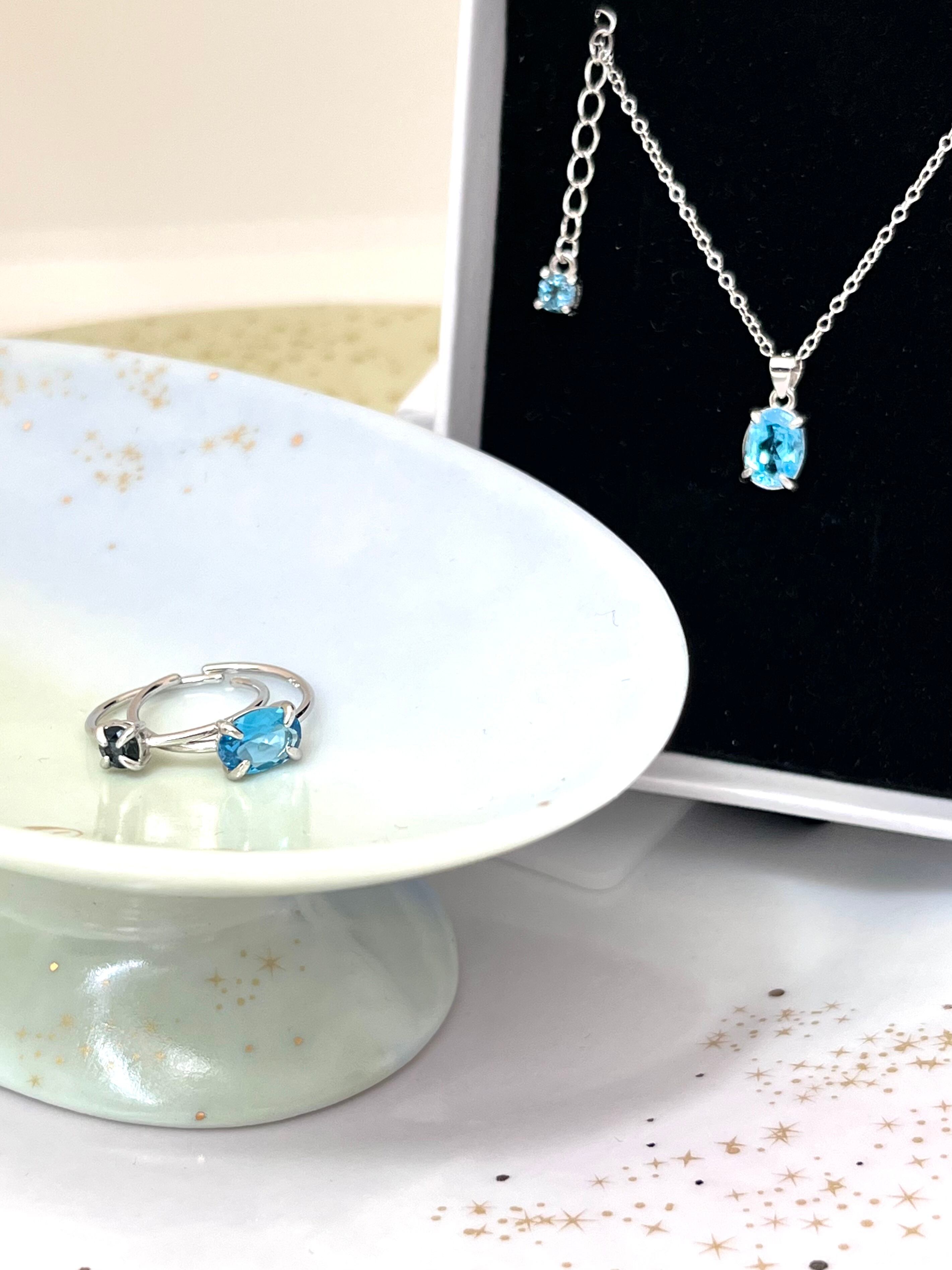 澄んだ青空のような色鮮やかなスイスブルートパーズのネックレス᯽ストーン本来の輝きが引き立つシンプルなデザインに…